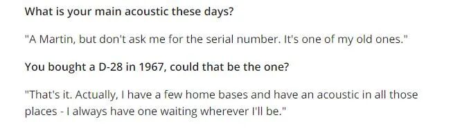 “一把马丁吉他,但你们别问我序列号,是一把老马丁吉他。”